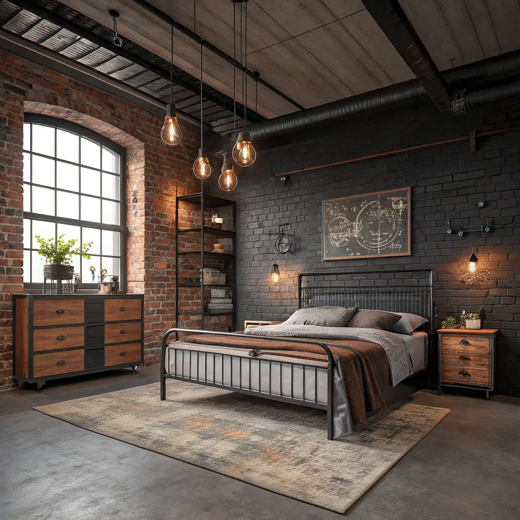 Exposed brick walls instantly transform any space – and if you’re renting, FYI, peel-and-stick brick wallpaper exists and looks surprisingly legit. Pair that with metal bed frames, preferably in black or gunmetal gray. I switched to an industrial pipe bed frame last year, and honestly, it’s become my favorite conversation starter.