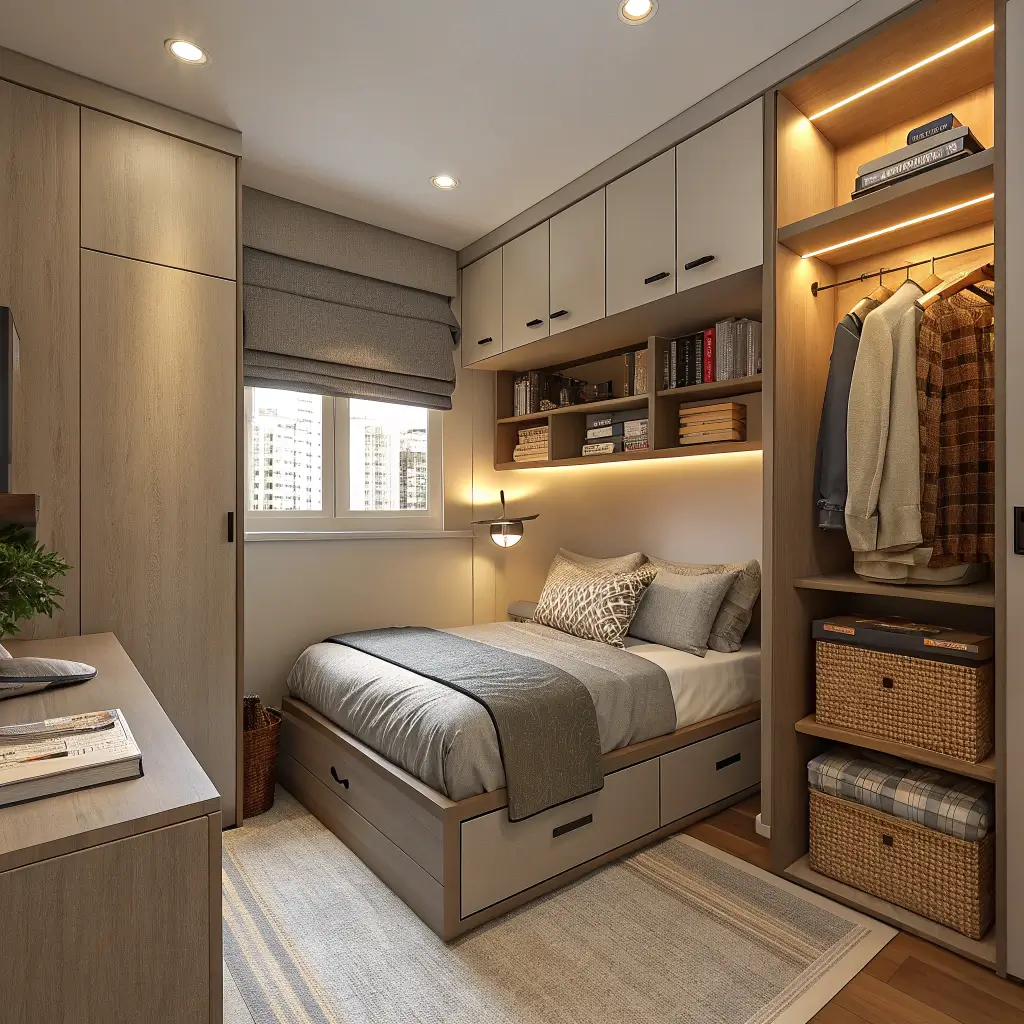 Real talk: most of us need our bedrooms to work harder than a startup employee. Multi-functional layouts make small spaces feel twice their size – it’s basically spatial magic.