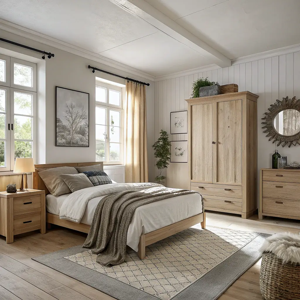 White walls are non-negotiable, but not stark white – think warm whites with gray undertones. Natural wood everything: floors, furniture, frames. Light woods like birch or pine keep things bright, unlike their darker cousins.