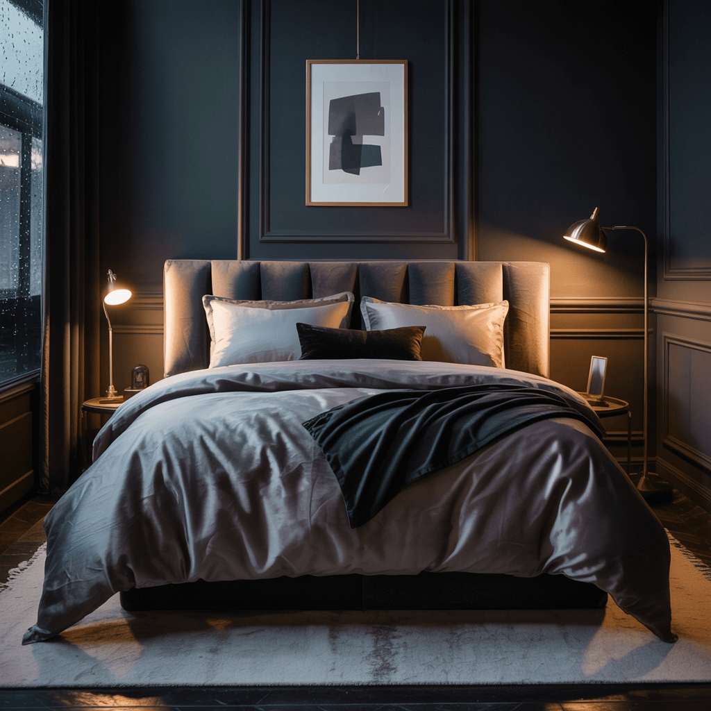 Sometimes you want your bedroom to feel like a sophisticated cave – and there’s absolutely nothing wrong with that. The dark and moody aesthetic creates an intimate, cocoon-like atmosphere that’s perfect for both sleep and, well, other bedroom activities 😉