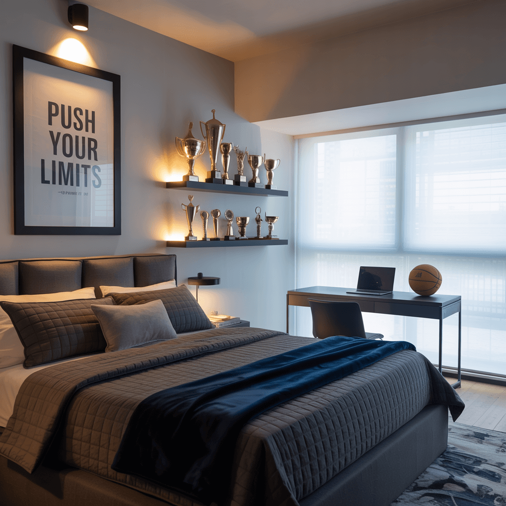 Listen, if you want to display your signed jerseys and trophies, own it. The athletic bedroom can be sophisticated when done right – think luxury sports bar, not locker room.