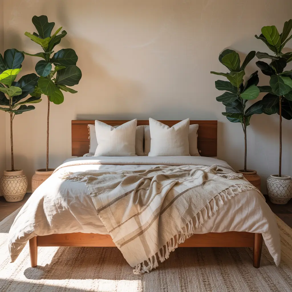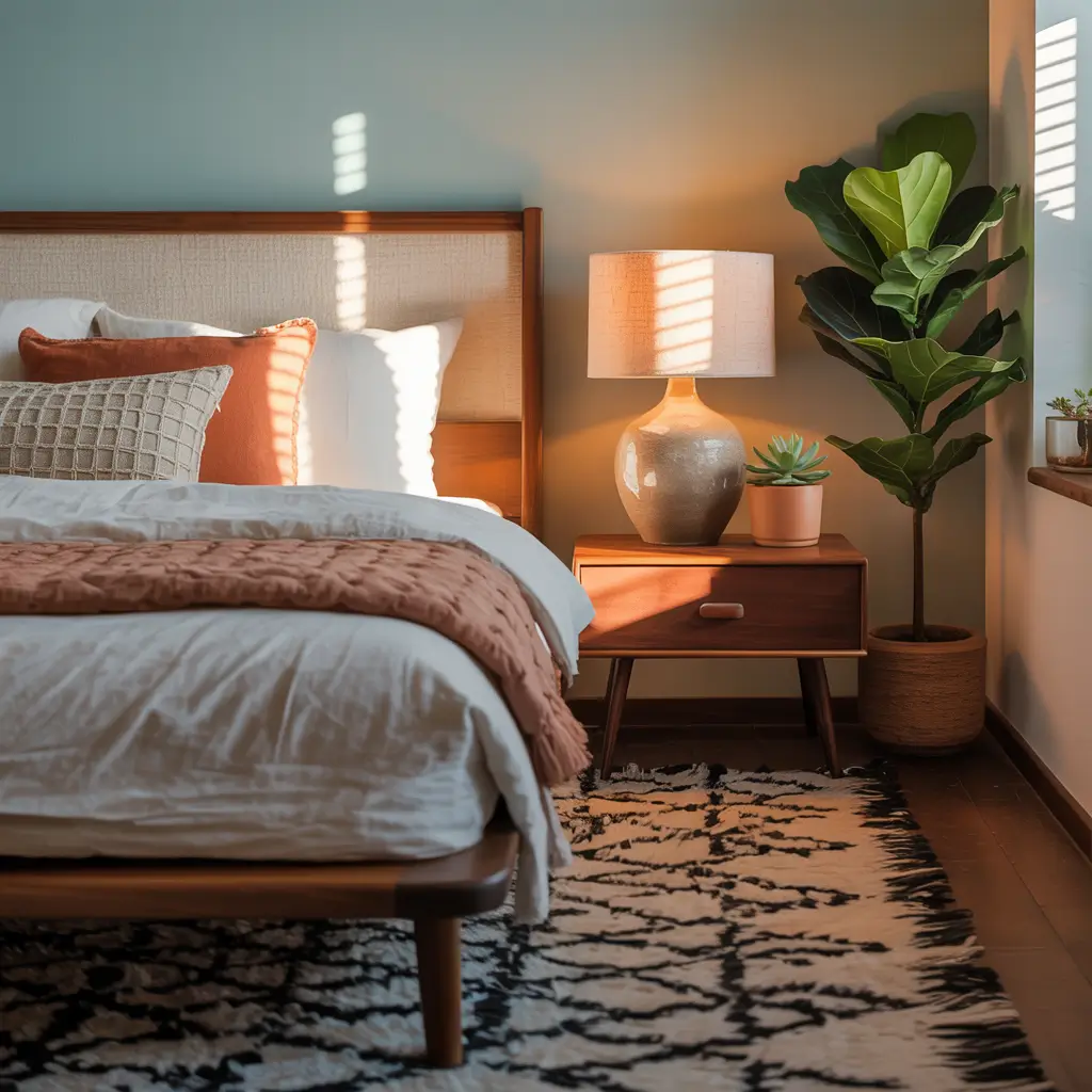 But let’s be real: not all of us have green thumbs. I’ve killed more succulents than I care to admit (aren’t they supposed to be indestructible?). The good news is that midcentury bedrooms don’t need jungle-level plant density. A few well-chosen green friends make all the difference.