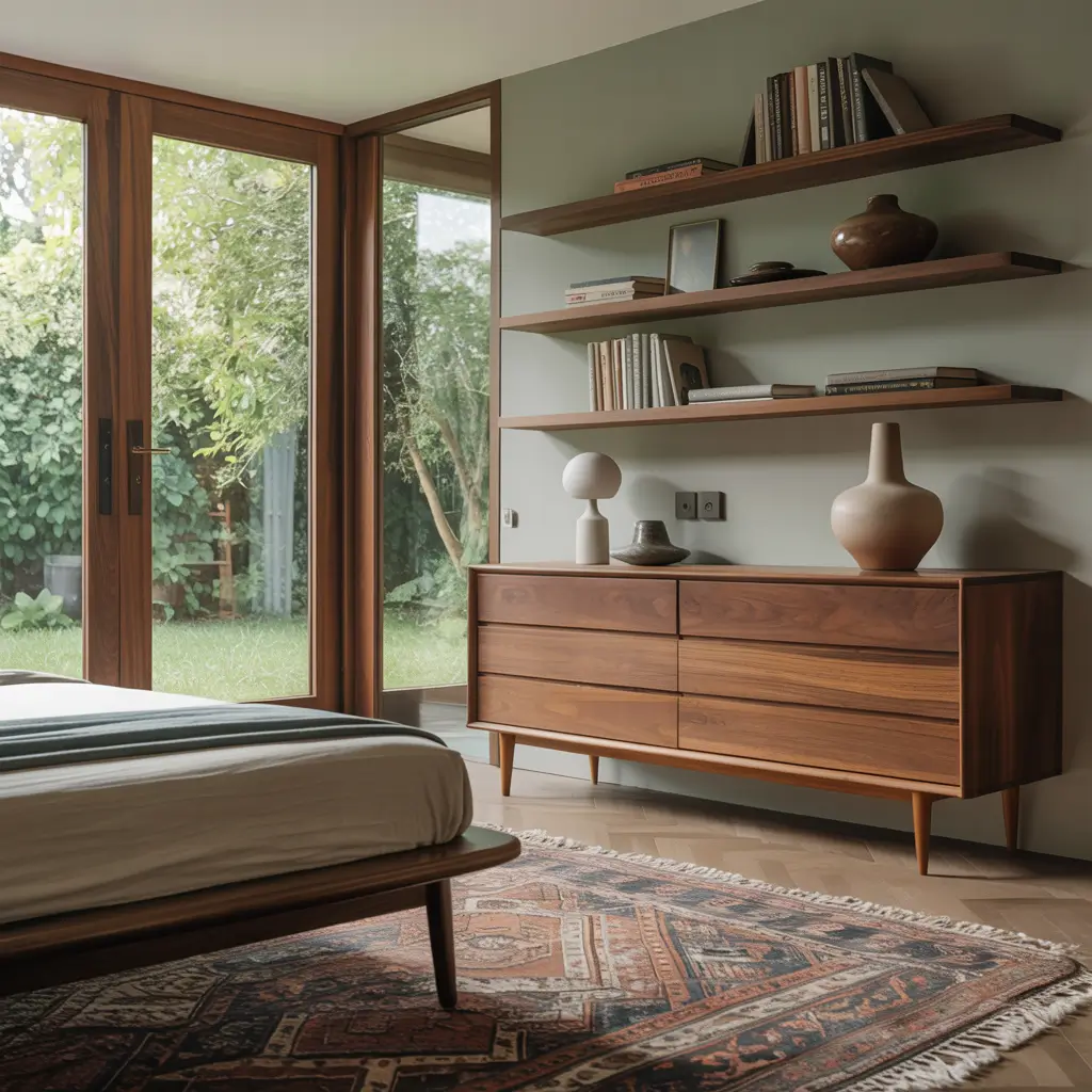 Wood is basically the backbone of midcentury modern design – without it, you’re just playing dress-up. But here’s where people mess up: they think any wood will do. Nope, not even close. The type and finish of wood you choose can make or break your entire bedroom aesthetic.