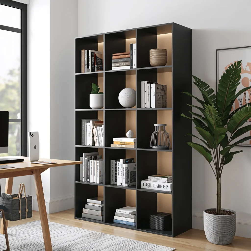 The trick with geometric shelves? Don’t overcrowd them. I keep about 3-5 books per compartment, mixed with small plants or decorative objects. This creates breathing room and prevents that cluttered library look.