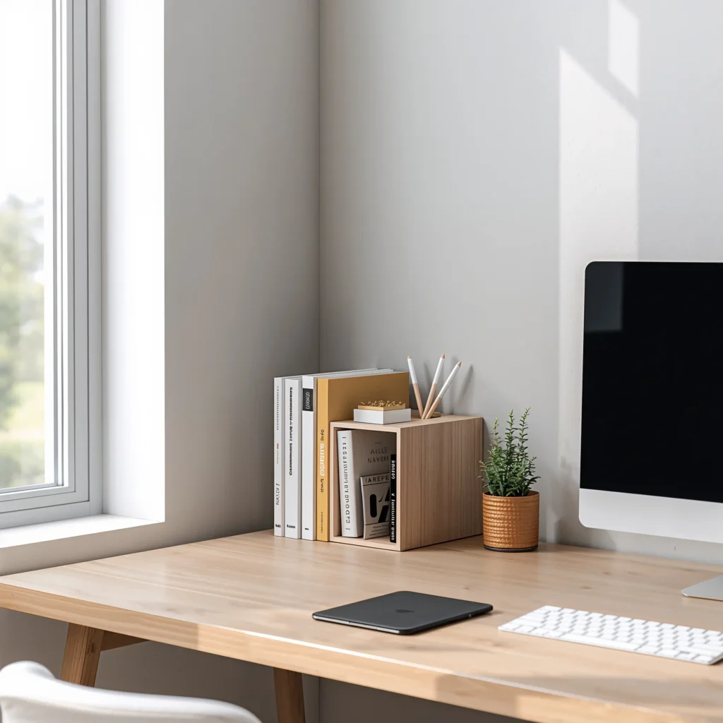 Working from home taught me one thing: desk real estate is sacred. That’s why my desk-side mini shelf became my favorite organizational tool. It keeps reference books within arm’s reach without cluttering my actual workspace.