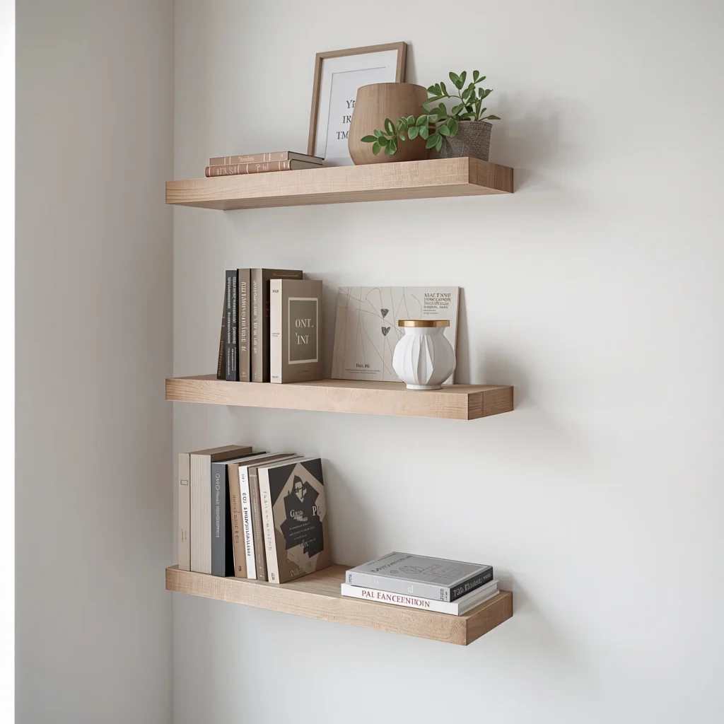 Sometimes less really is more. My minimalist floating shelf trio proves you don’t need elaborate systems to display books beautifully. Three simple shelves at varying heights create rhythm and balance while keeping the focus on your books.