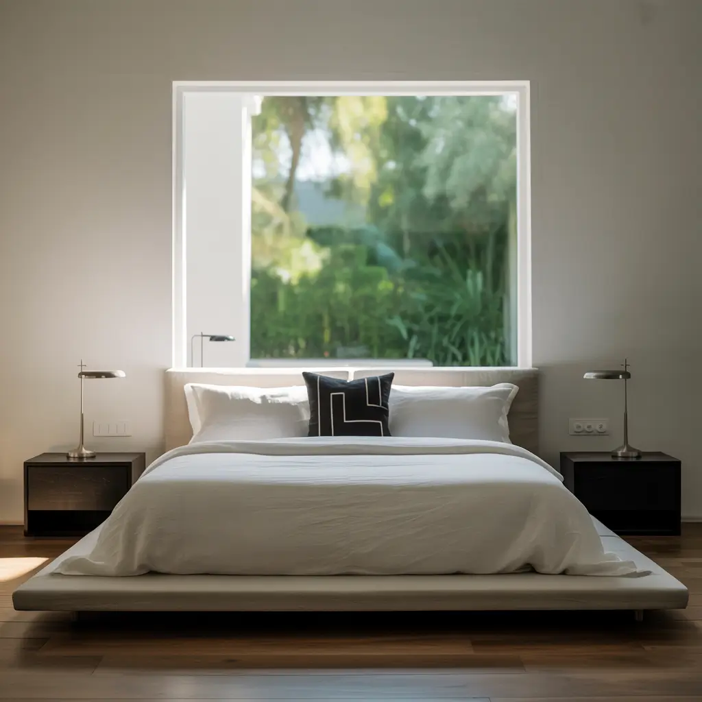 Start with a low platform bed – closer to the ground means closer to zen, apparently. Choose furniture with clean lines and natural finishes. Think light wood meets darker accents like charcoal or deep brown.