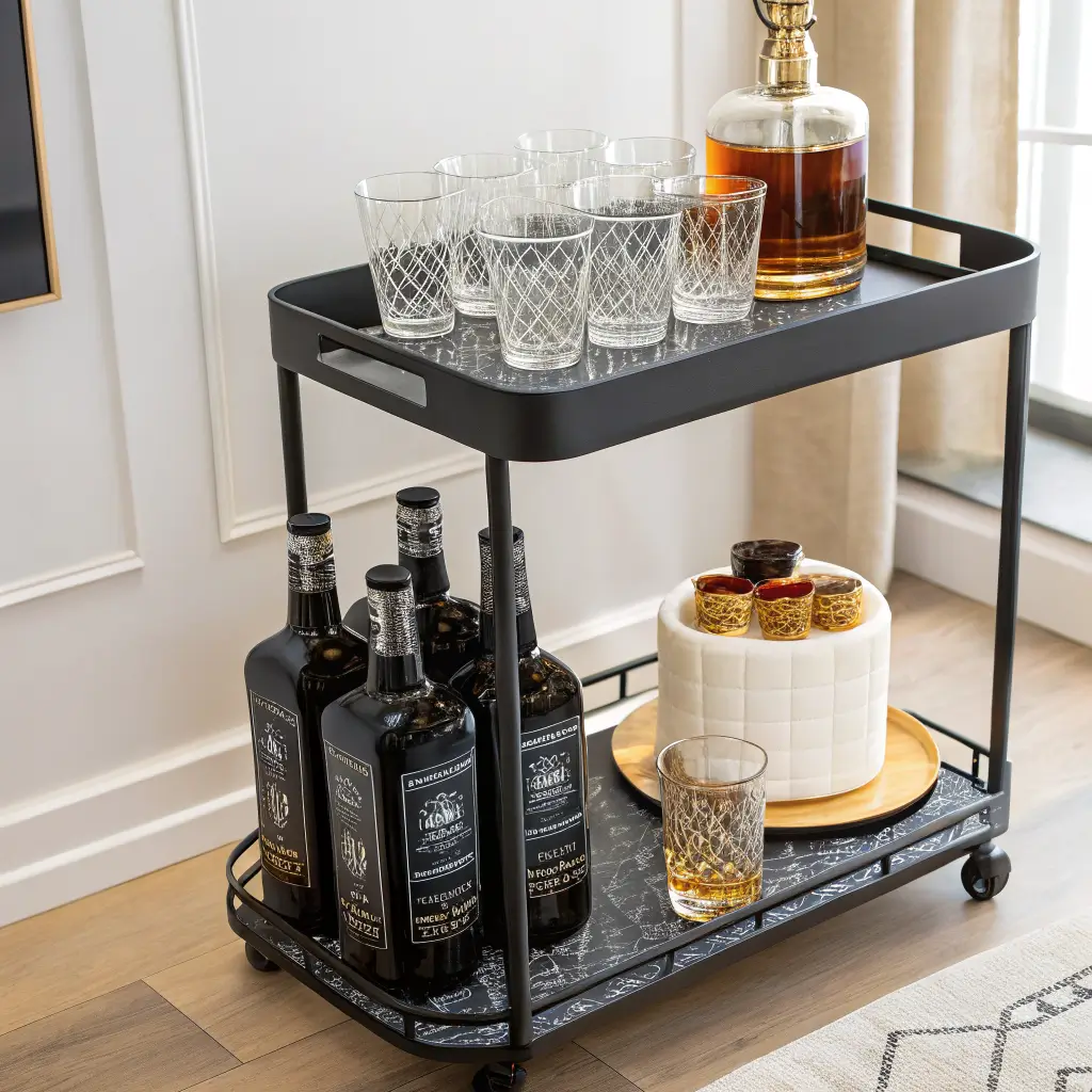 I used to think bar carts were just for people with more money than sense, but I’ve completely changed my tune. Even a simple rolling cart from a furniture store can look sophisticated with the right styling. The trick is curation over accumulation.