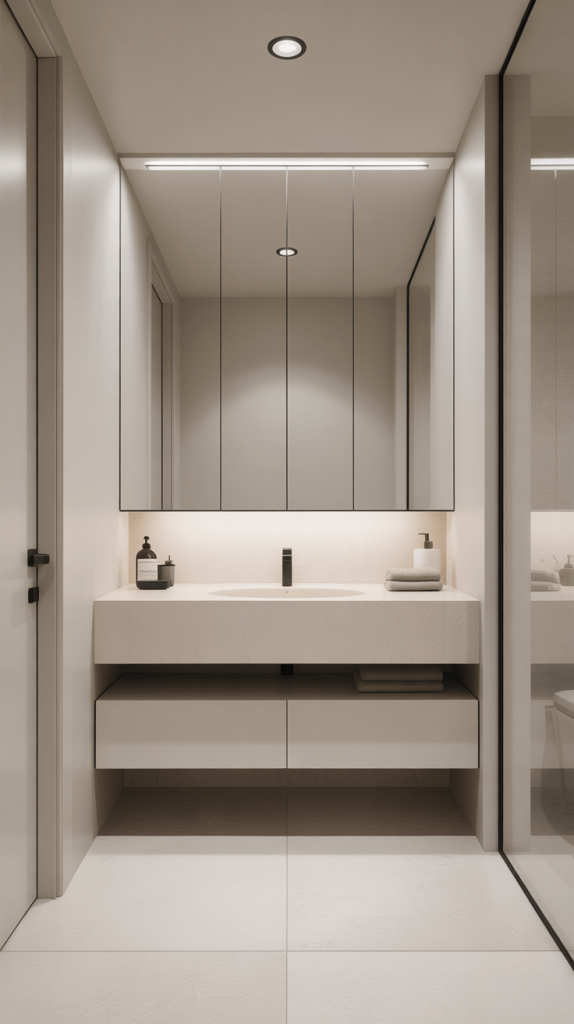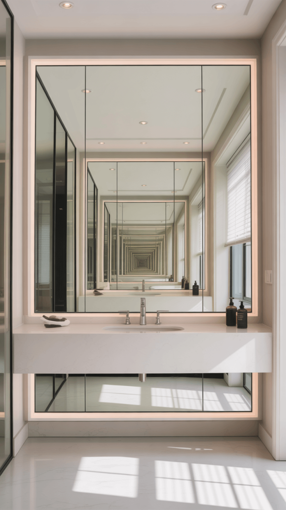 • Mirror, Mirror on the Whole Wall: For the ultimate space-enhancing trick, mirror an entire wall. This is a bold move that works incredibly well in powder rooms or small ensuites to completely obliterate any claustrophobic feelings.