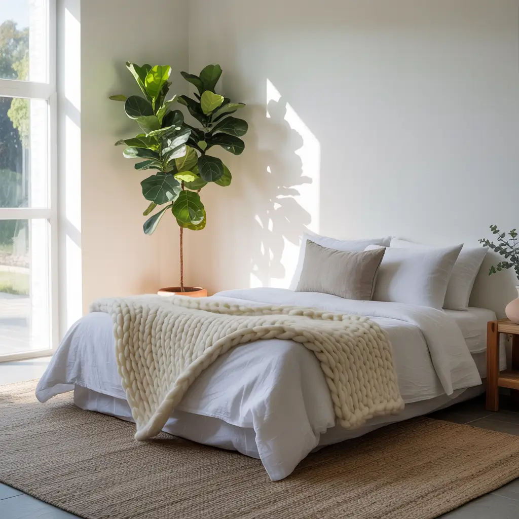 But empty doesn’t mean cold. Warm wood tones, soft textiles, and strategic greenery (one perfect bonsai or a tall fiddle leaf fig) add life without cluttering the space. The result? A bedroom that actually helps you sleep better. FYI, my insomnia practically disappeared after I redesigned my room in this style.