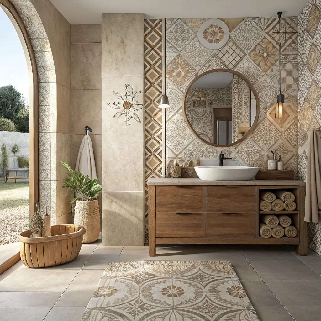 If you want to invest in one thing that completely transforms your bathroom, make it textured tile. Zellige tile, in particular, has become the darling of modern boho design โ€” and for good reason. Each handmade tile catches light differently, creating a shimmery, organic surface that flat, machine-made tile simply cannot replicate.