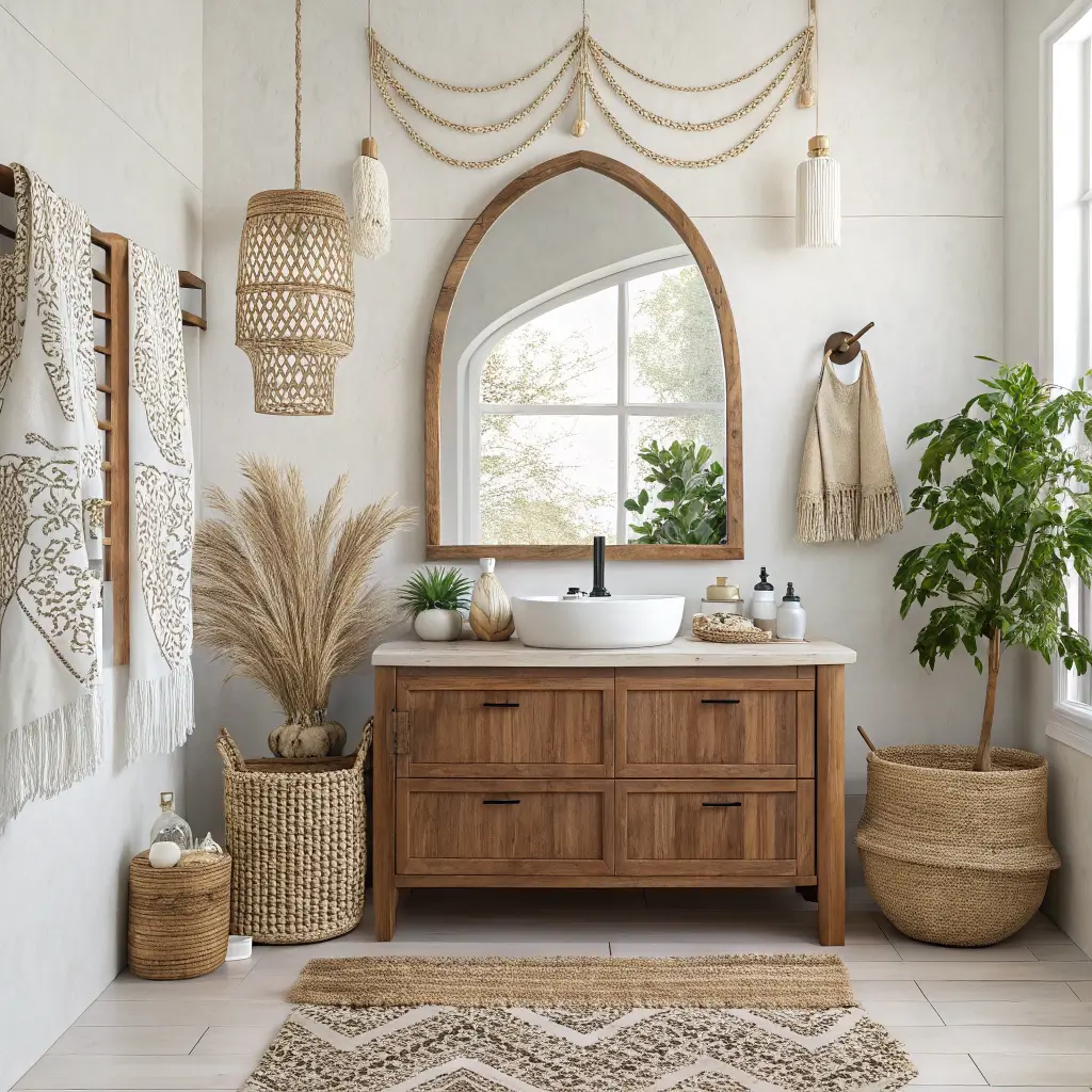 Got a tiny bathroom? Good news โ€” modern boho actually thrives in small spaces. The layered textures, warm materials, and organic elements that define this style create coziness rather than claustrophobia when applied to a compact room.