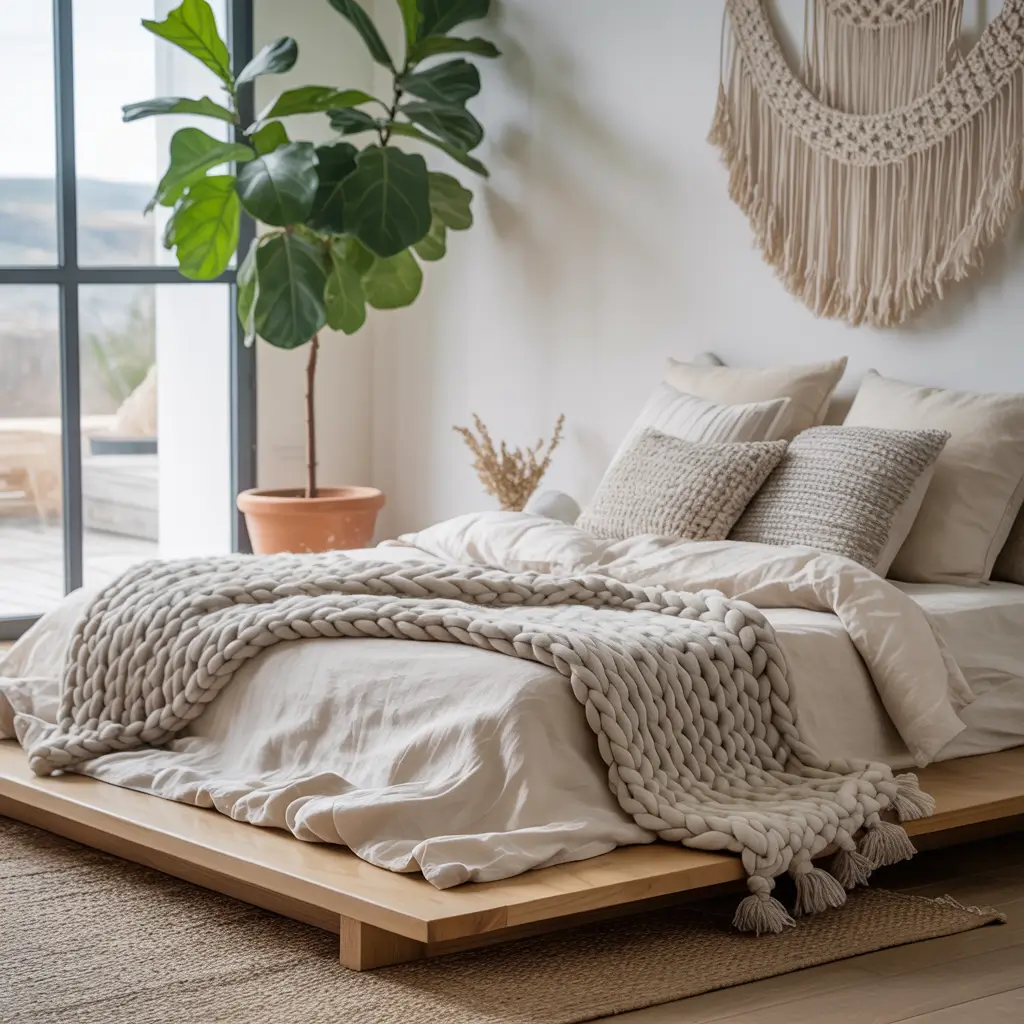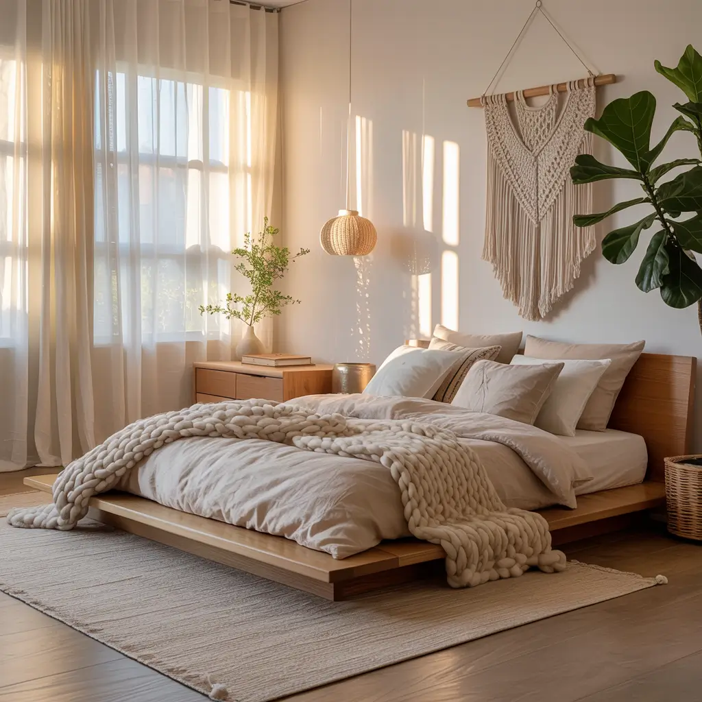 - One or two statement pieces (maybe a jute rug or single macramé wall hanging)