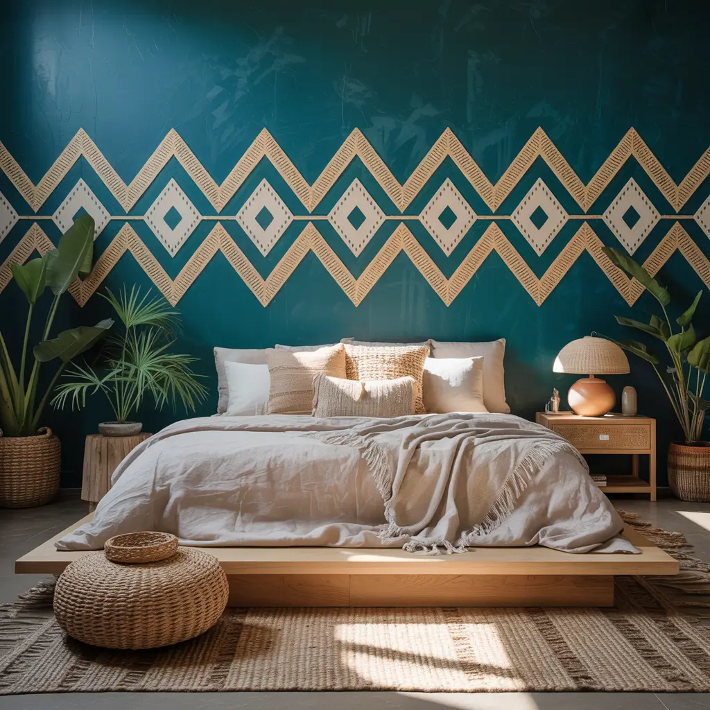 Accent walls get a bad rep from those aggressive red walls of the early 2000s, but modern boho accent walls are a whole different story. We’re talking subtle geometric patterns, organic shapes, or textured wallpapers that add depth without screaming for attention.