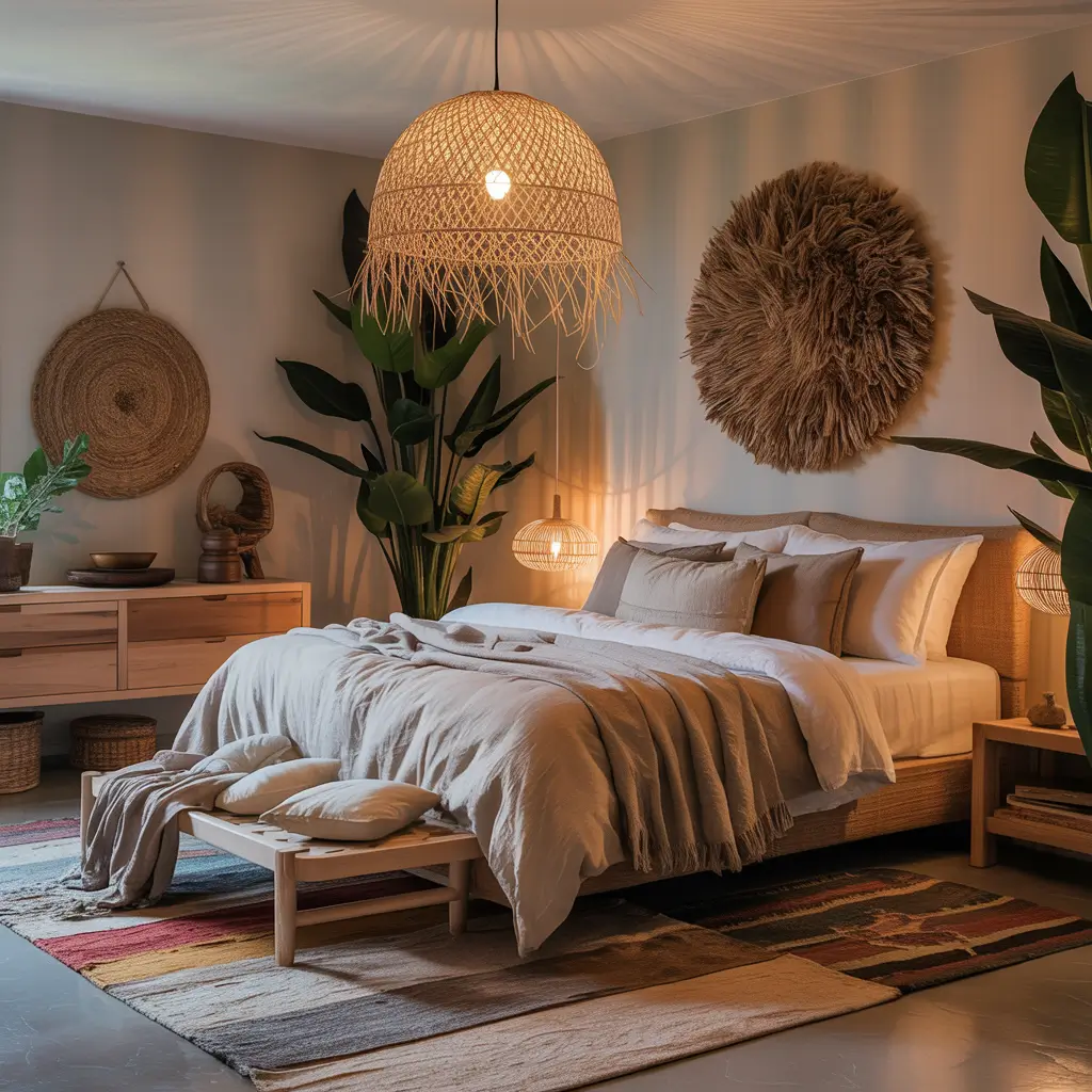 Lighting makes or breaks a room, and woven light fixtures bring that perfect boho touch while actually serving a purpose. These fixtures cast the most beautiful shadows, creating ambiance that regular lamps just can’t achieve.