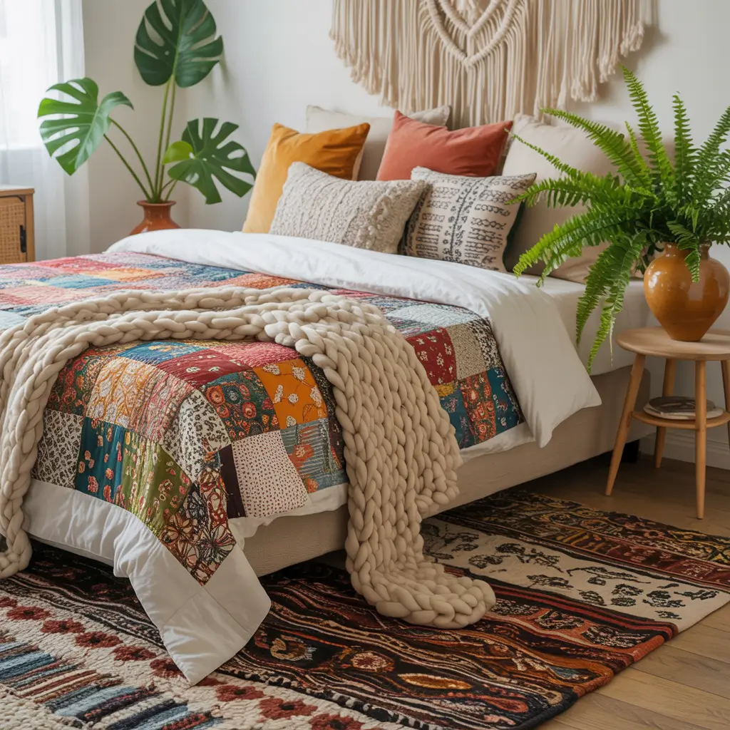 Texture is where modern boho really gets to flex. We’re talking about creating a space that begs to be touched – layers upon layers of different materials that make your bedroom feel like a high-end hotel suite crossed with an artist’s retreat.