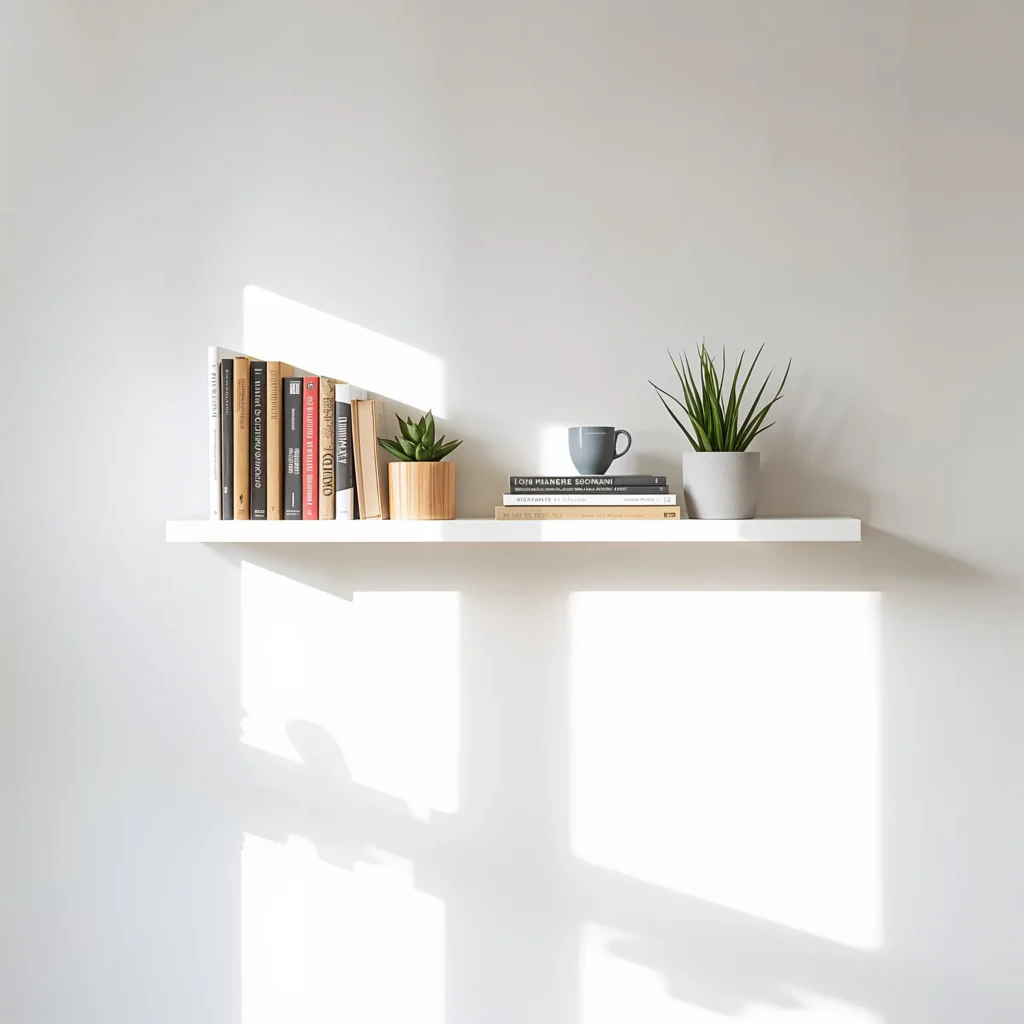 The beauty of minimalist floating shelves lies in their simplicity. You mount them directly to the wall, leaving the floor space completely open. This creates an airy feeling that traditional bookcases just can’t match. Plus, you control exactly how many shelves you want and where they go.