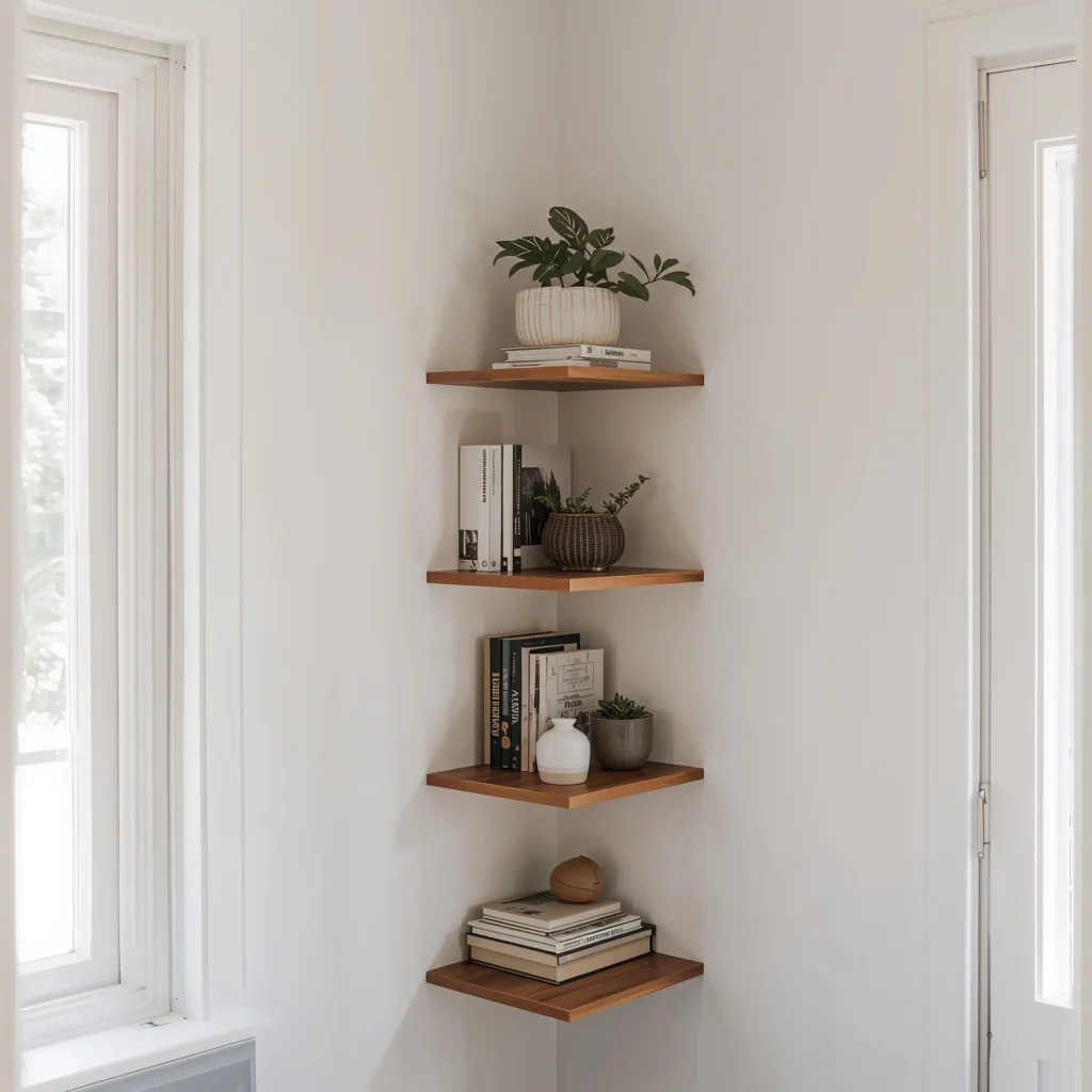 Corners – the forgotten real estate of every room. Floating corner shelves turn these dead zones into design features that actually contribute to your space instead of collecting dust bunnies.
