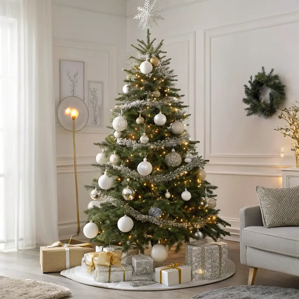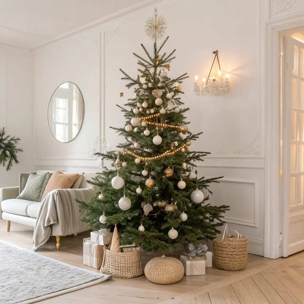 Let me start with my personal favorite – the neutral minimalist Christmas tree. I switched to this style three years ago, and I’m never going back to the technicolor chaos of traditional trees. Picture this: a perfectly shaped evergreen adorned with only cream-colored baubles, natural wood ornaments, and maybe some dried orange slices. That’s it. No flashing lights that give you a headache, no clash of red and green that makes your eyes hurt.