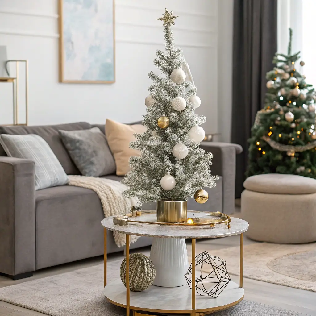 IMO, three small trees beat one large tree any day. You can style each differently – maybe one minimalist, one metallic, and one traditional. This creates visual interest and lets you experiment with different styles without committing to one look.