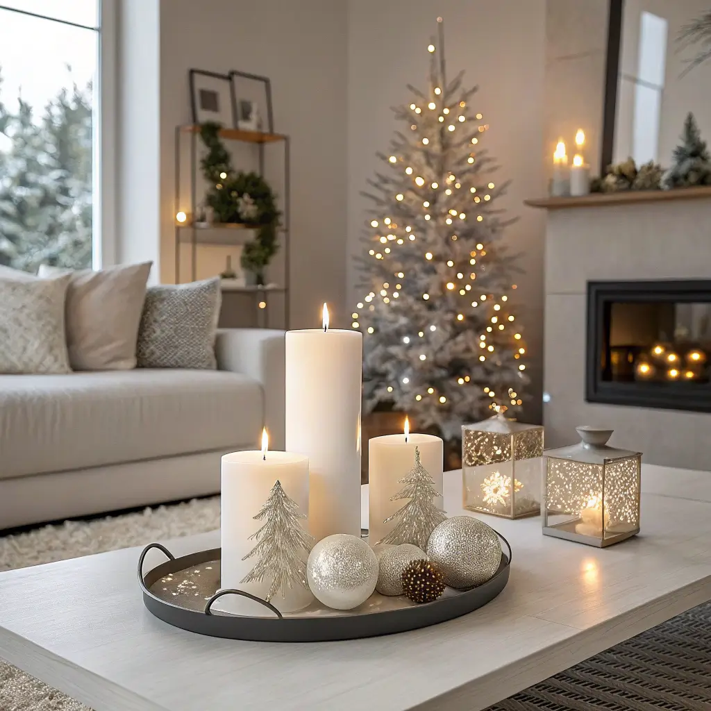 Nothing says modern elegance like a candlelit Christmas setup. Forget those holiday-scented candles that smell like someone dumped a bottle of cinnamon extract in your living room. Choose unscented pillars in varying heights, arranged on modern trays or geometric holders.