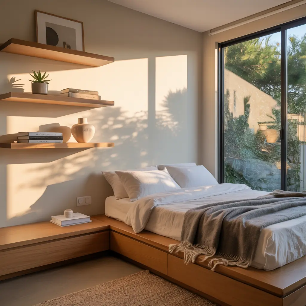 The golden rule? Everything needs to multitask. My ottoman stores extra bedding, my headboard has built-in shelves, and my nightstand doubles as a desk. Vertical space becomes your best friend – I installed shelves all the way to the ceiling and suddenly had room for everything.