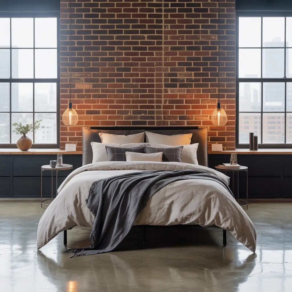 Exposed brick, metal fixtures, and raw wood – industrial design brings urban edge to any bedroom. I transformed my cookie-cutter suburban room into something that looks straight out of a converted loft, and people can’t believe it’s the same space.