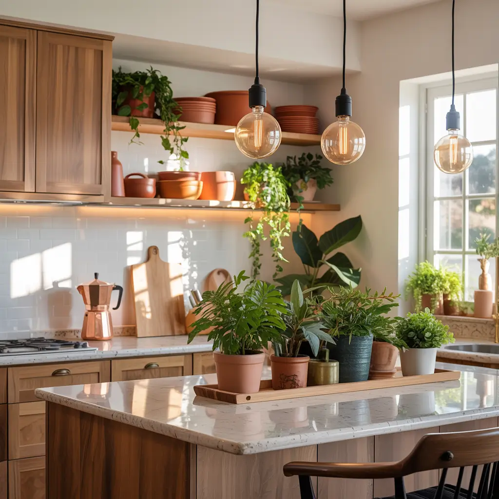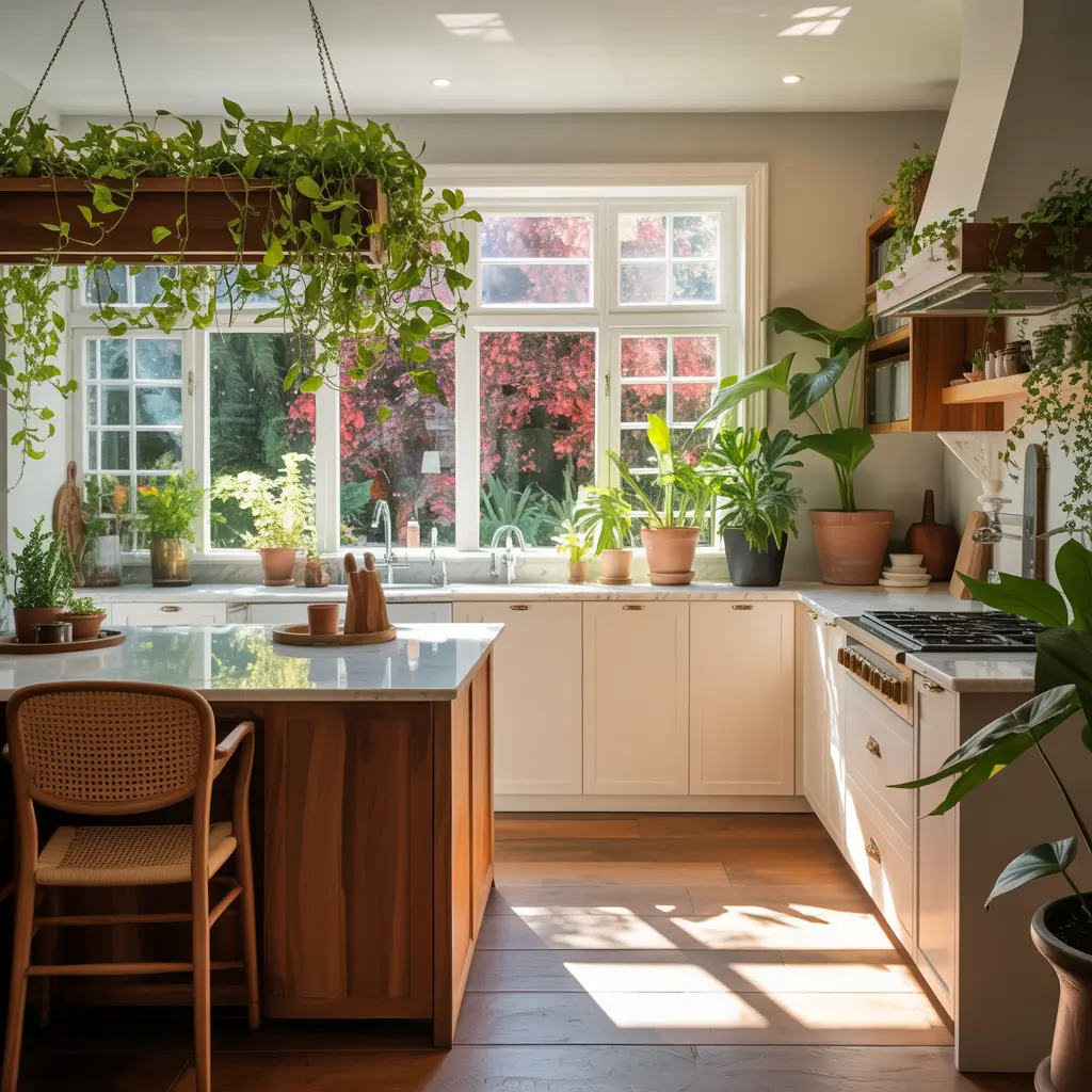 Modern Kitchen with Greenery and Plants