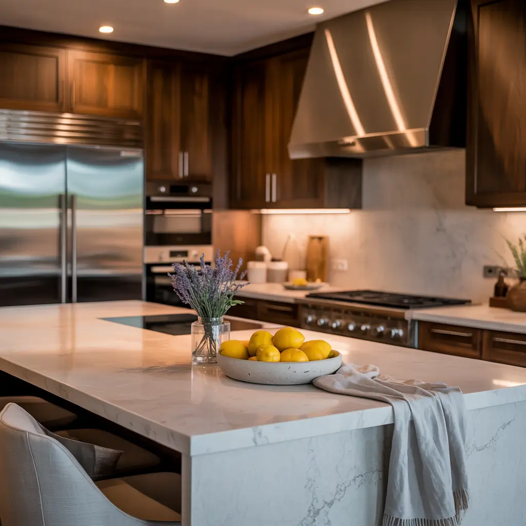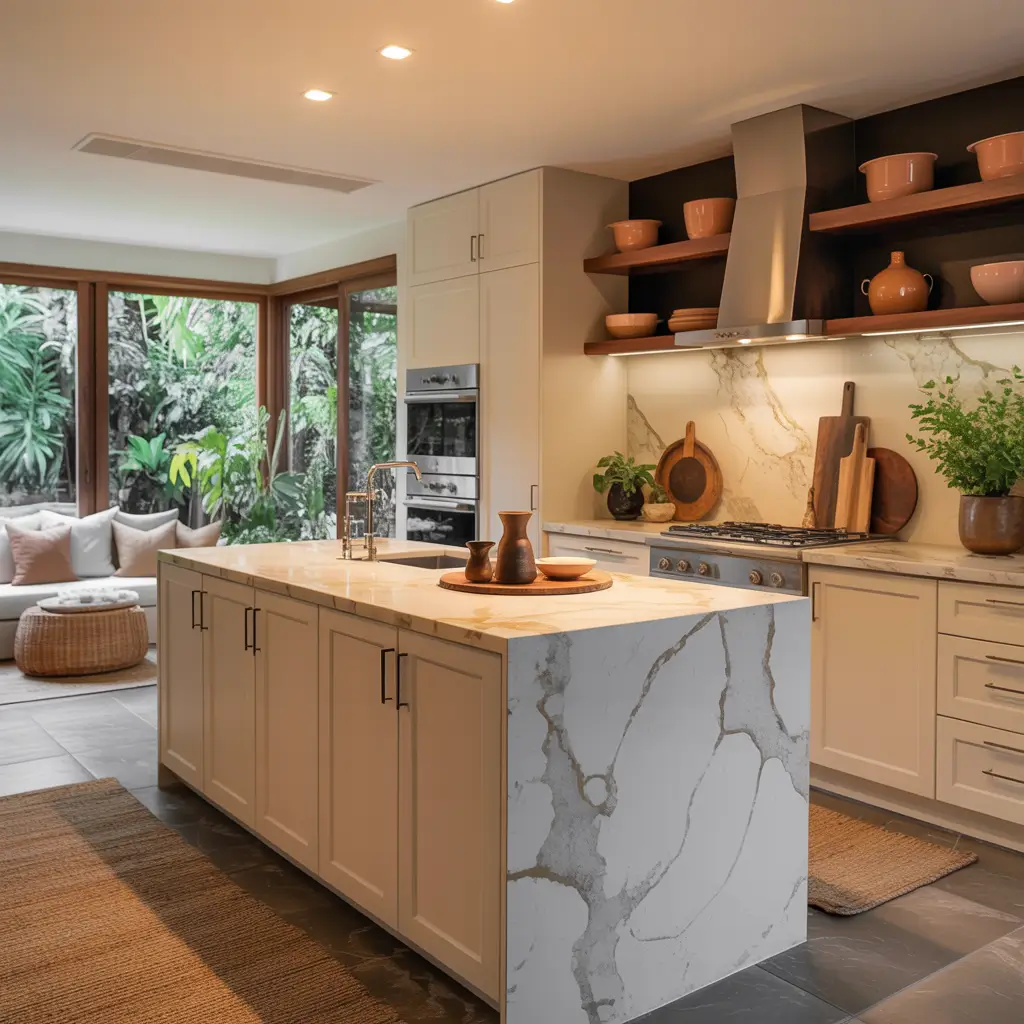 Modern Kitchen with Natural Stone and Warm Tones