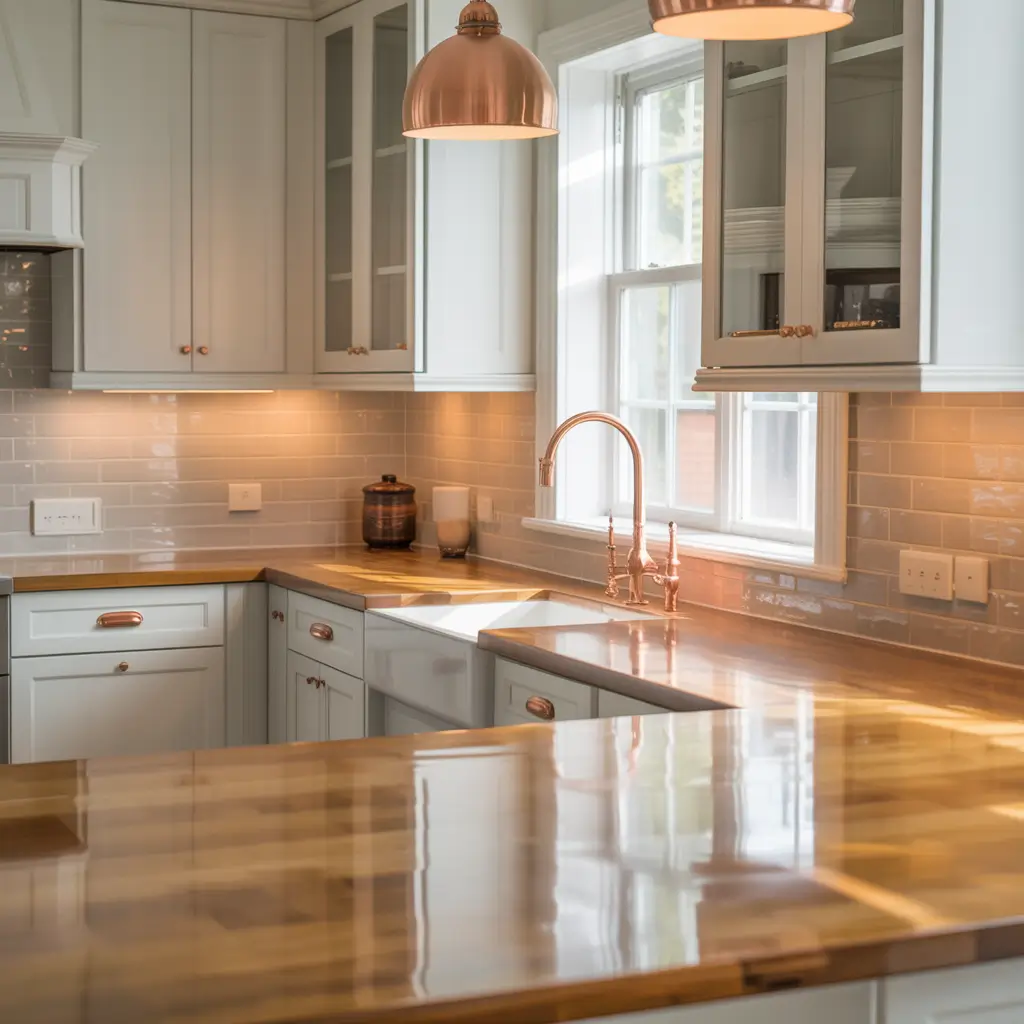 - Warm metallic finishes (copper, brass, bronze)