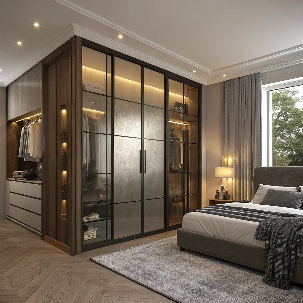 Glass Panel Modern Wardrobe