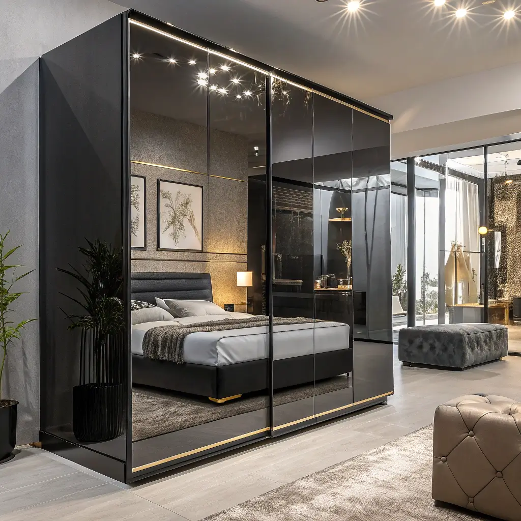 The reflective surface bounces light around the room, making everything feel brighter and more spacious. Plus, checking your outfit before leaving becomes infinitely easier when your entire wardrobe is also your mirror.