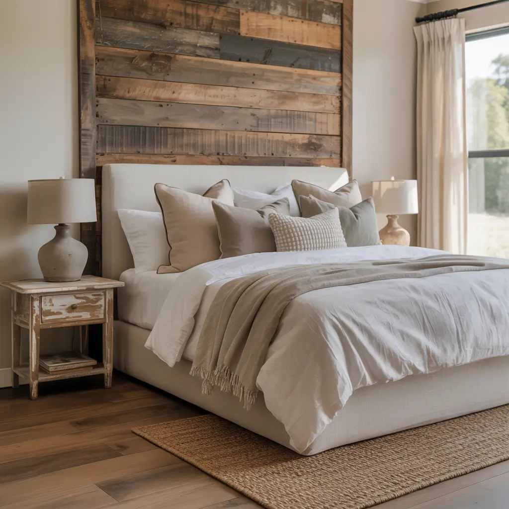 Farmhouse Bedroom with Reclaimed Wood Furniture