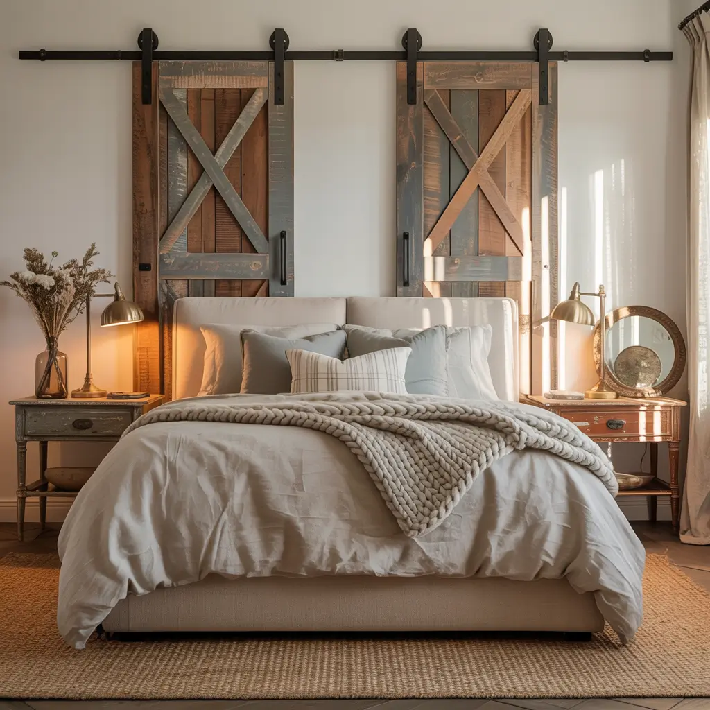 Can we talk about how sliding barn doors went from actual barns to being the hottest bedroom feature? Installing one between your bedroom and bathroom or as a closet door instantly adds that farmhouse charm while saving precious floor space. Genius, right?