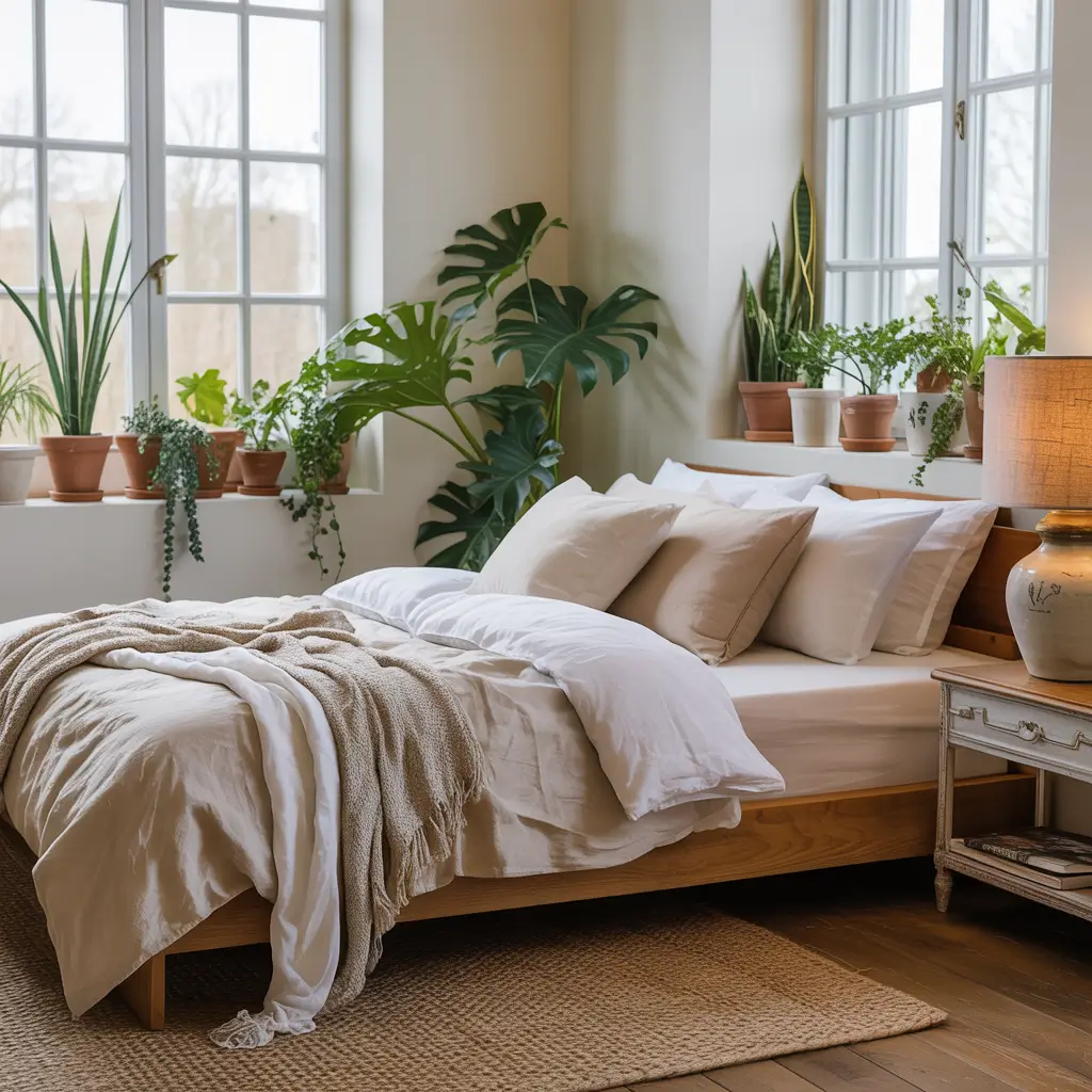 Farmhouse Bedroom with Natural Light & Plants