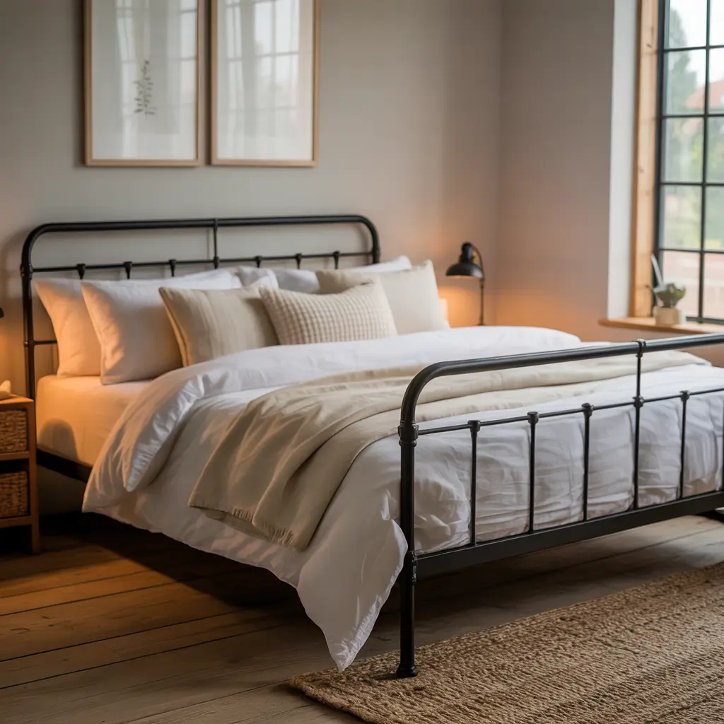 - Black iron bed frames or headboards