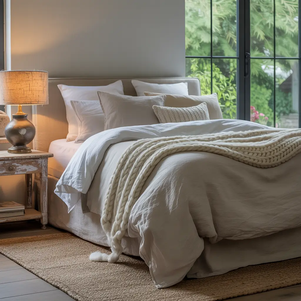 Chic Farmhouse Bedroom with Layered Bedding