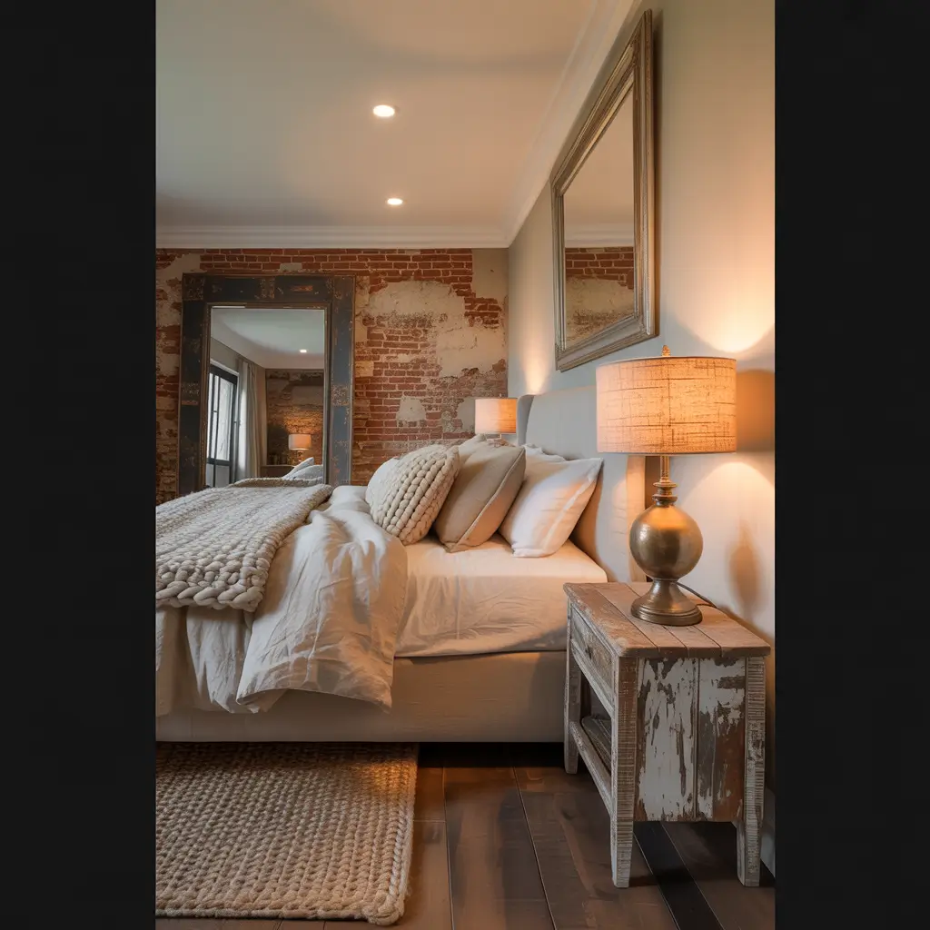 The rule I follow? Choose one dominant metal (usually black in farmhouse), one accent metal (brass or copper), and maybe sprinkle in a third sparingly. Your bed frame might be black iron, but those picture frames could be brass, and that vintage mirror has a copper patina. See? It works!