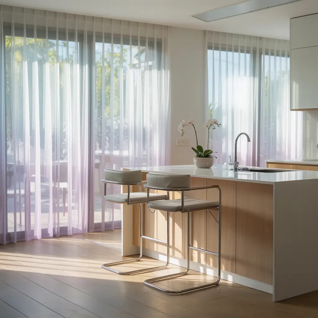 I installed ombre panels that fade from white to soft gray in my breakfast nook, and every morning feels like I’m dining in a cloud. The gradient effect adds visual height to your windows, which is perfect if you’re dealing with standard-sized windows that feel a bit underwhelming.