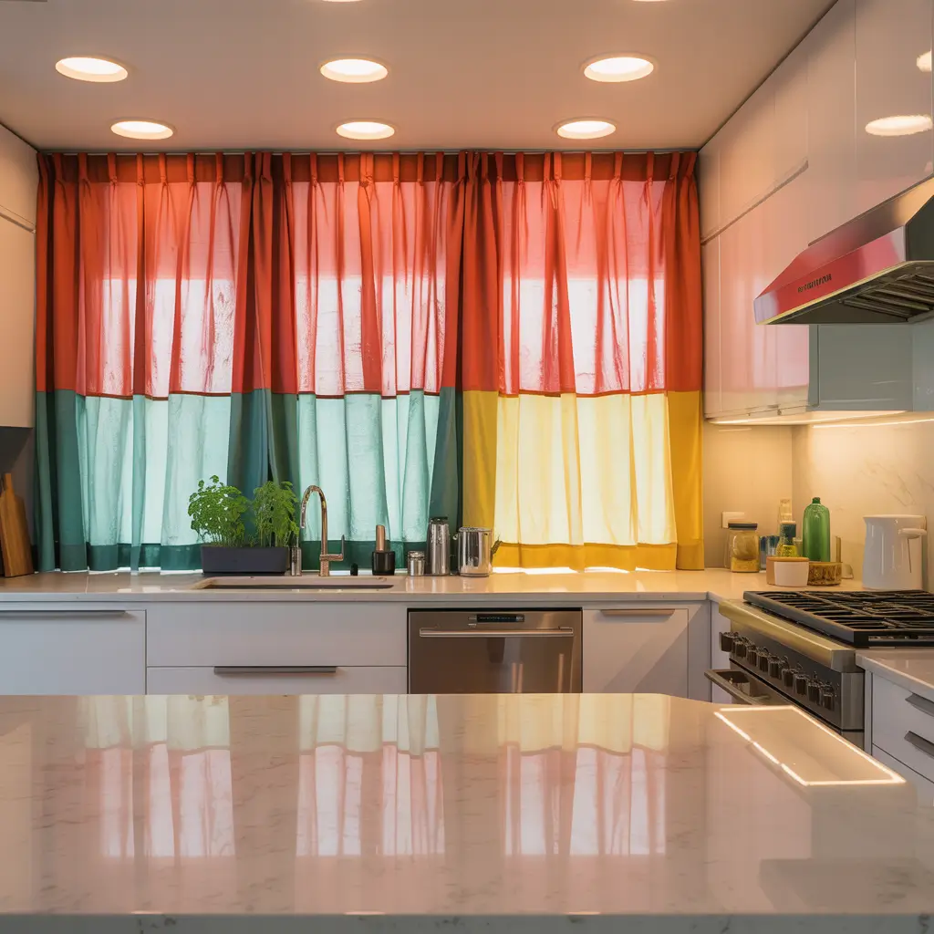 Who says kitchens have to be boring? Bold color block curtains inject instant personality into any cooking space. Think vibrant rectangles of color that make a statement without requiring a complete kitchen overhaul.