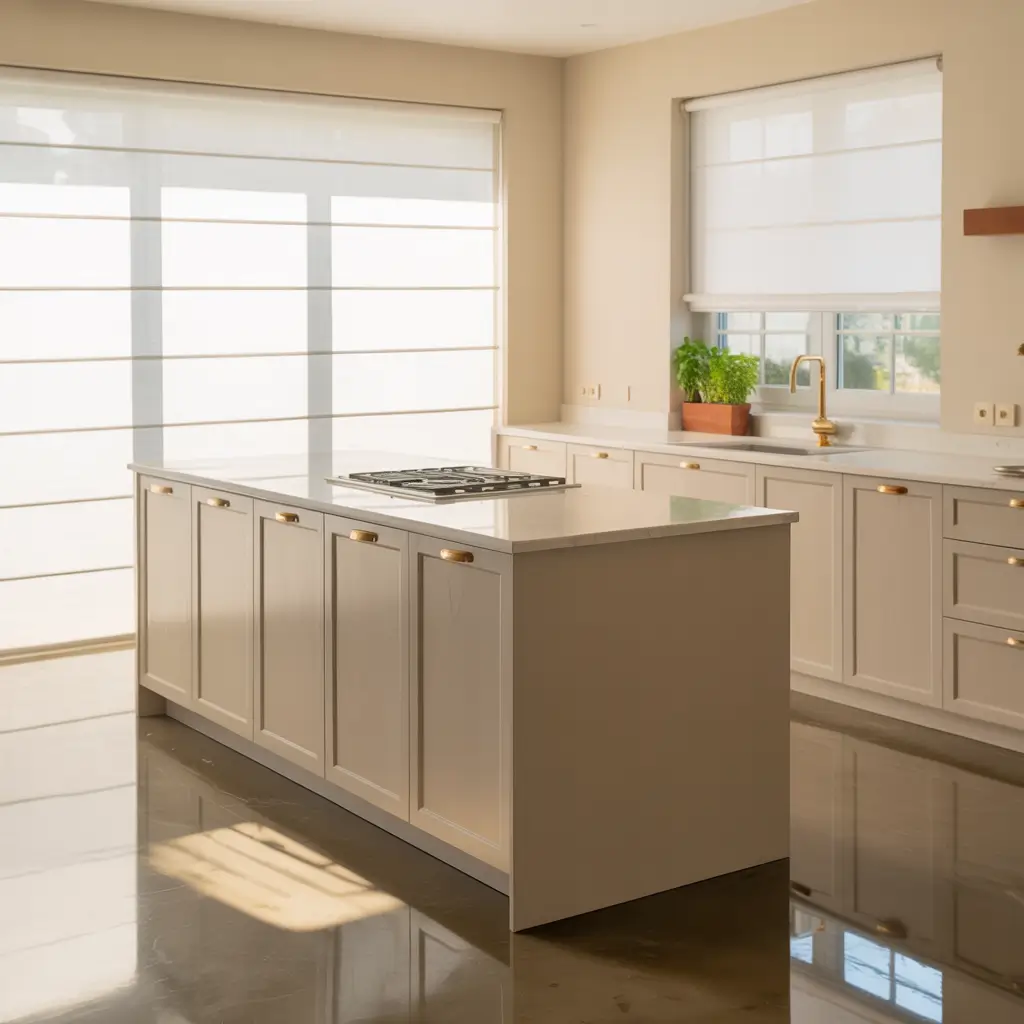 Sometimes curtains feel like too much fabric for a kitchen, especially if you’re dealing with limited space. Enter light-filtering roller shades – the minimalist’s dream solution. These sleek window treatments practically disappear when raised but provide excellent light control when you need it.