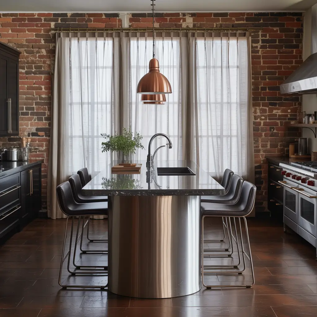 Ready to add some edge to your kitchen? Industrial-style curtains on metal pipes bring that coveted loft aesthetic right into your cooking space. The exposed hardware becomes part of the design, not something to hide.