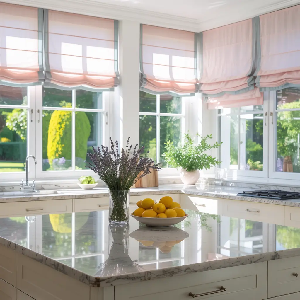 I installed blush pink Roman shades in a client’s white kitchen, and the transformation was incredible. The soft color added warmth without overwhelming the space, and the tailored look elevated the entire room.
