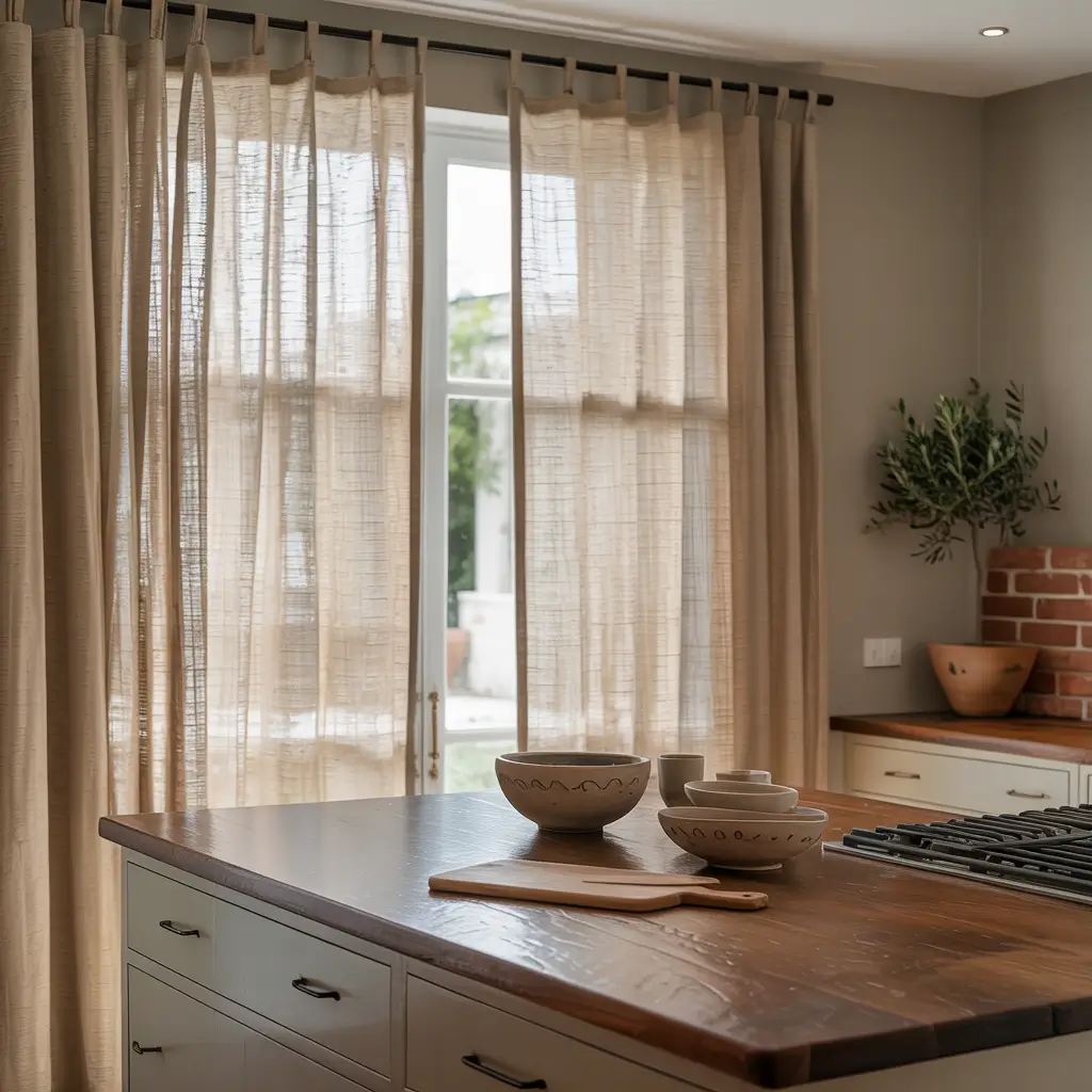 My Scandi cotton curtains in soft oatmeal have survived two kitchen renovations because they’re just that versatile. They provide privacy without blocking light, and the organic cotton feels substantial without being heavy.