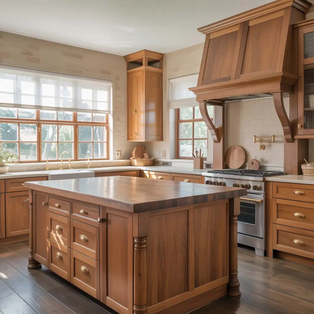 Different wood tones can coexist beautifully – don’t feel locked into one species. Mix walnut cabinets with oak floors and a maple cutting board island top. The variety adds visual interest while maintaining that cohesive woody vibe.