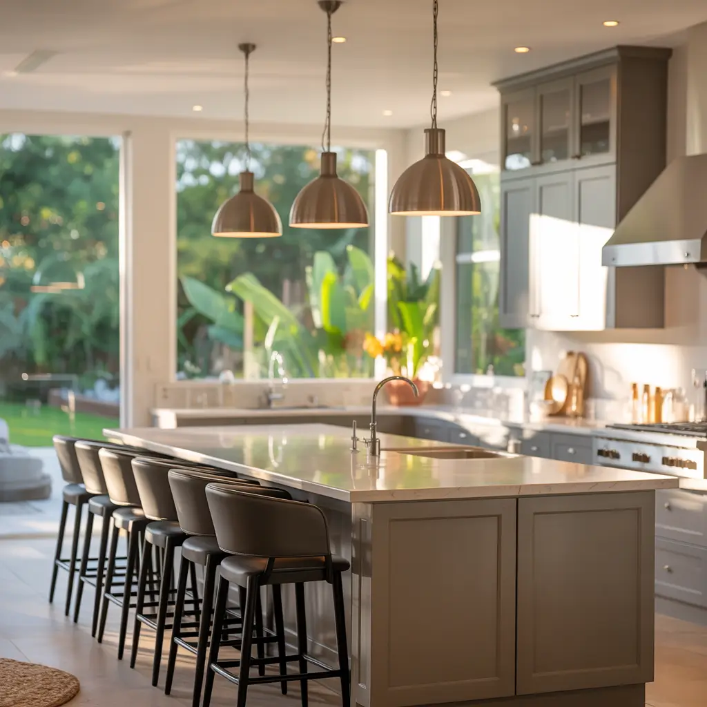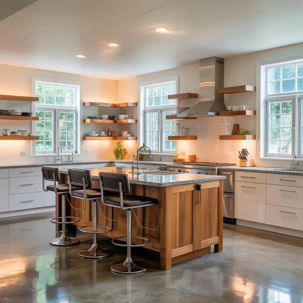 Lighting makes or breaks your open kitchen. Layer ambient, task, and accent lighting for a space that functions beautifully morning through evening.