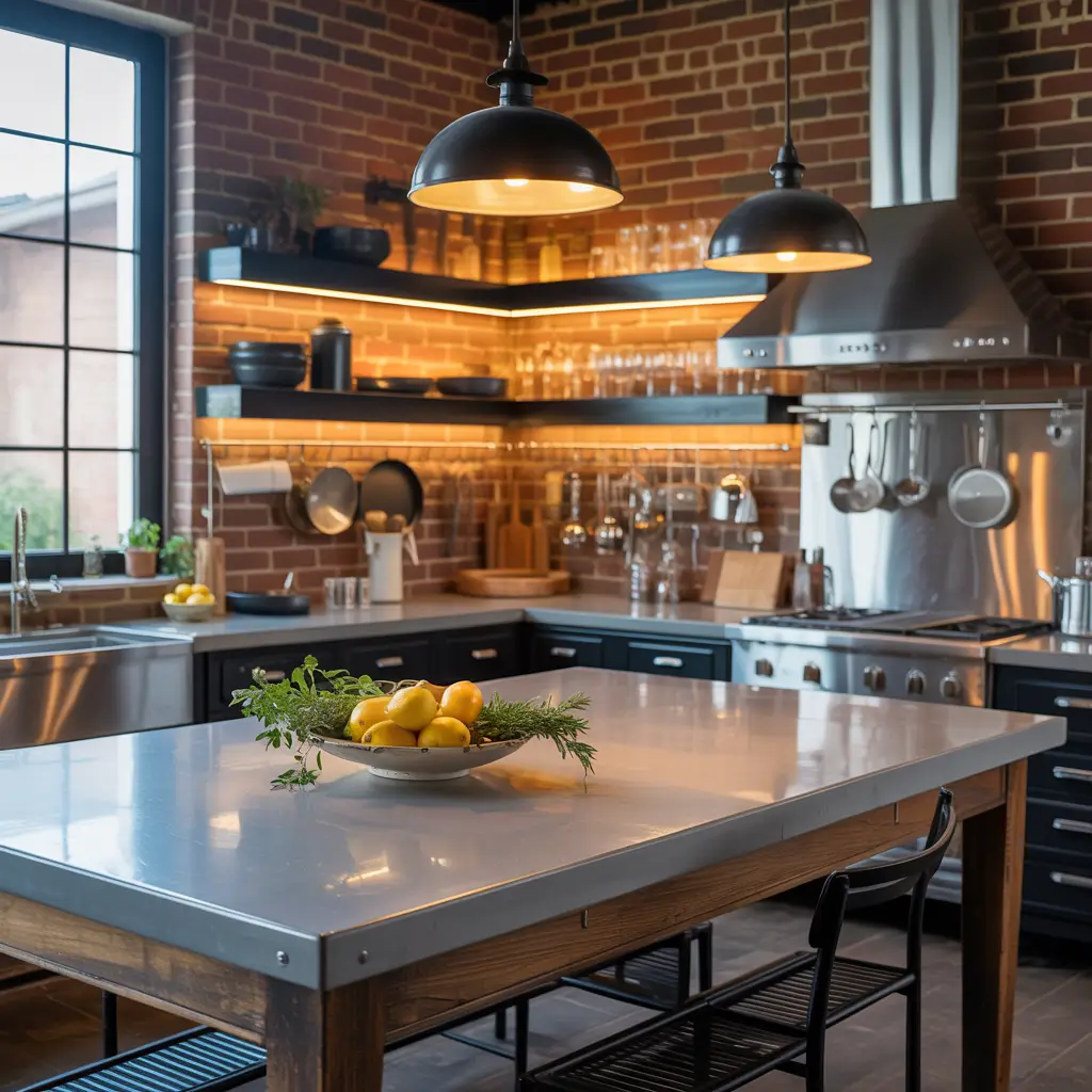 Industrial kitchens bring that cool, urban edge that makes you feel like you’re cooking in a converted loft – even if you’re actually in suburbia. Exposed brick, metal fixtures, and concrete elements define this style.