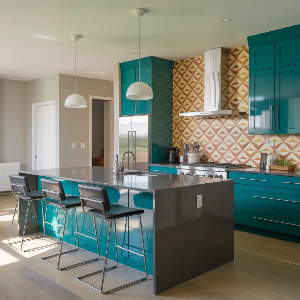Scared of color? Start small with bold accents. A vibrant backsplash, colorful bar stools, or a statement island adds personality without overwhelming the space.