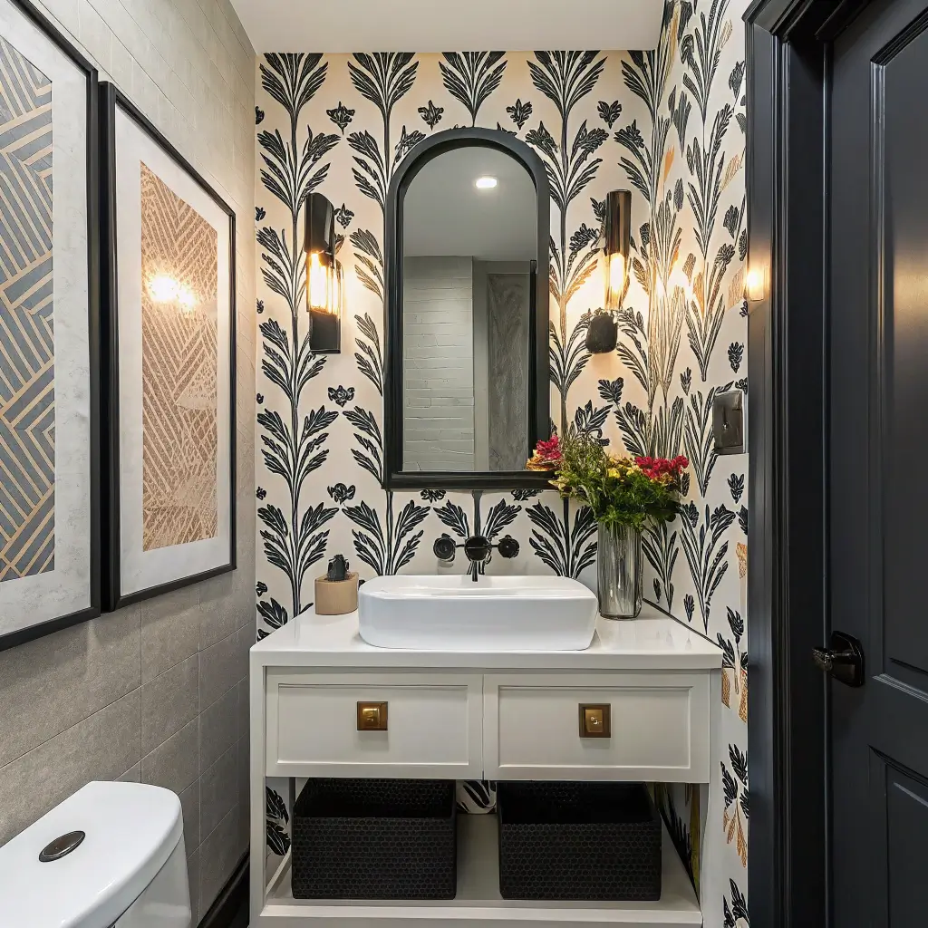 The key here is balance. If your wallpaper is going crazy with colors and patterns, keep everything else simple. Matte black fixtures ground the space and prevent it from feeling like a funhouse. I’ve seen this done brilliantly with tropical prints, geometric patterns, and even scenic murals.