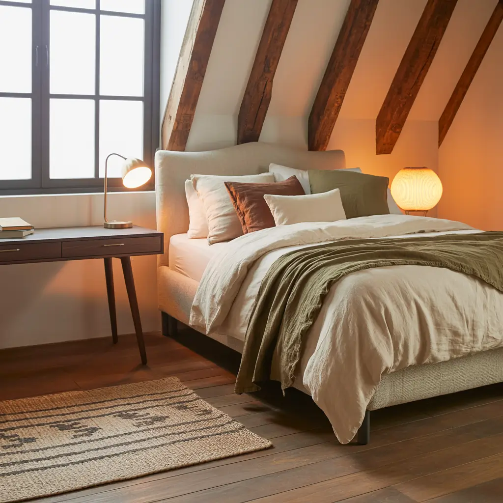 Layer different textures – chunky knit throws, soft flannel sheets, and maybe a sheepskin rug. The color scheme stays neutral with whites, grays, and natural wood tones, but you can sneak in navy or forest green accents. Natural light plays a huge role here, so keep window treatments minimal.
